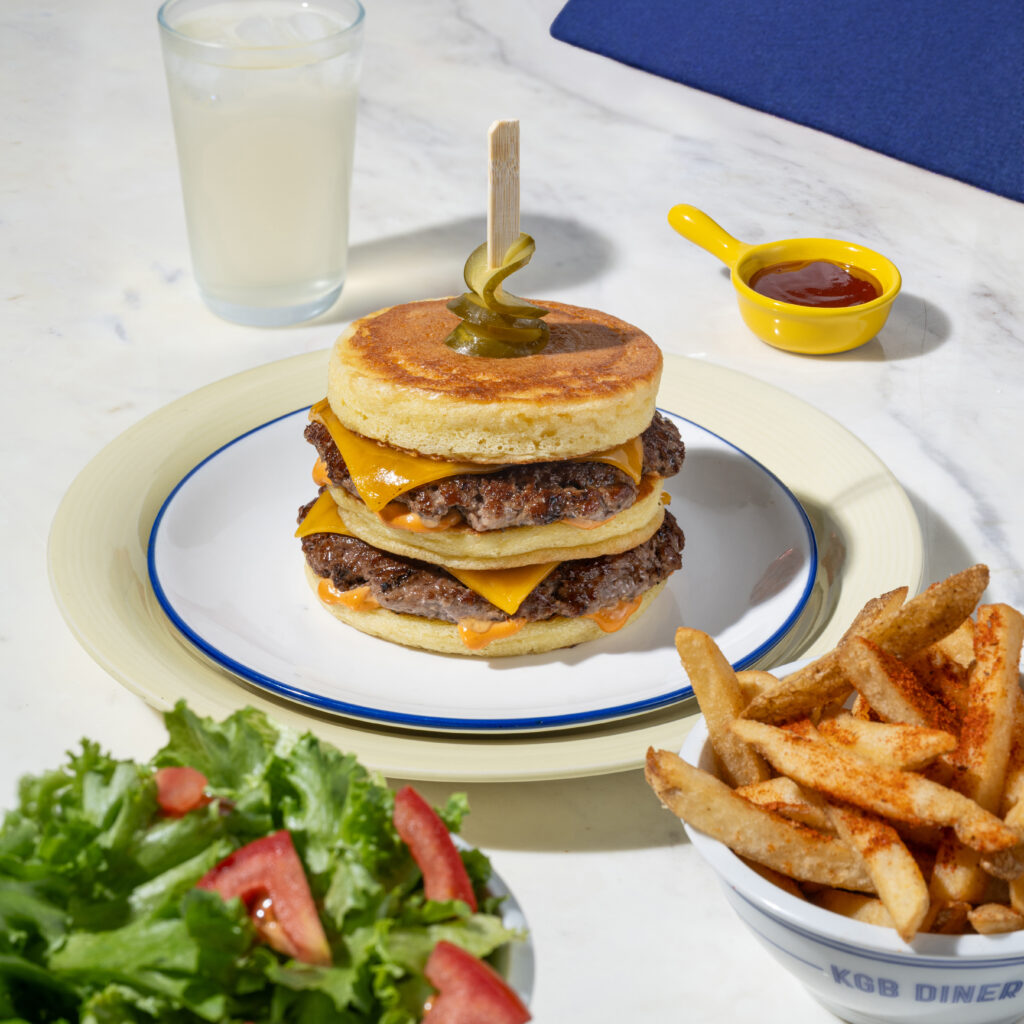 Burger toppings come in the form of old school combinations like caramelized onions and sharp cheddar to espresso bacon jam with maple-glazed cornflakes.