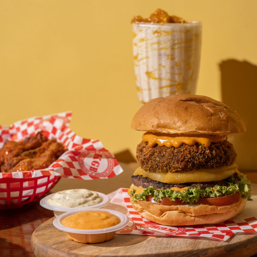 We cannot decide which burger cooking style rules, so we do them all. We serve our beef burgers ultra smashed ‘diner style’ or flame grilled ‘gourmet style’. Chicken burgers are cooked on the grill or deep-fried till golden. Non-meat eaters have the option of grilled vegetarian patties and mushroom.